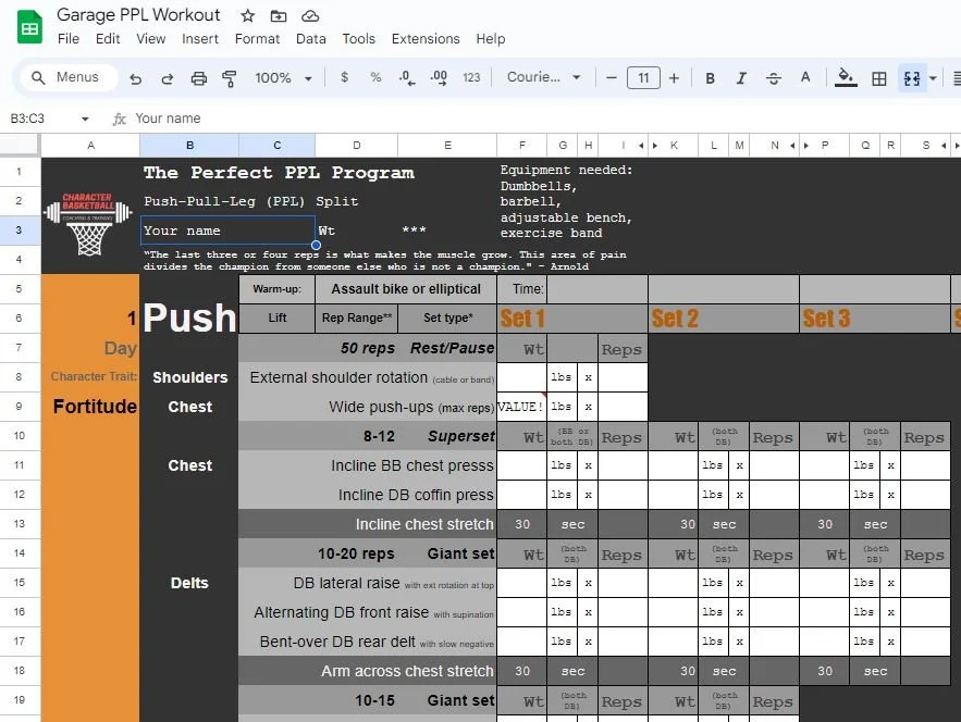 Welcome to the Character Basketball store. After purchasing a product you will receive a .pdf that will contain instructions and a link to your workout tracker. For more info check out this video Categories: All Home DB Full Gym Skills Training Jump training All / Full Gym The Perfect PPL Program Sale Price: $0.00 Original Price: $5.00 Sale Add To Cart Added! FREE Century Set for beginners Sale Price: $0.00 Original Price: $5.00 Sale Add To Cart Added! the Barbell 50s $5.00 Add To Cart Added! The 300 rep workouts (Full Gym) $5.00 Add To Cart Added!