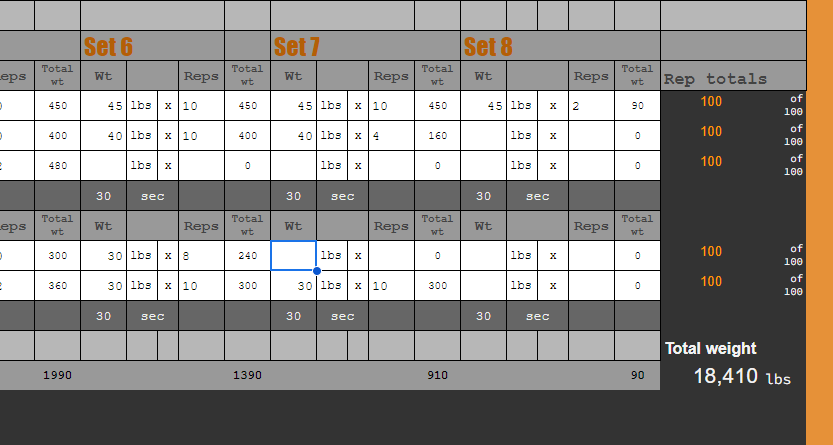 This Google Sheet will track your total number of reps and total weight for the workout.