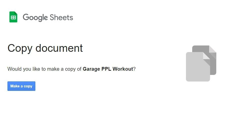 After purchase, open the .pdf and click on the link to copy the Google Sheet to your personal Google Drive to use at the gym for real-time tracking.